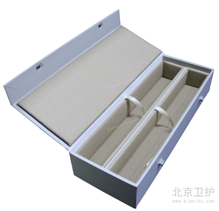 文物囊匣就是文物工作者根據(jù)文物的材質(zhì)、形狀、器形的大小、重量等多種因素,選用特殊的材料和多種多樣的制作方法為每一件文物設(shè)計(jì)制作的外包裝容器,這種傳統(tǒng)的包裝工藝技術(shù)屬于特種包裝。囊匣以對(duì)文物無害的無酸紙為主要材質(zhì),根據(jù)文物的質(zhì)地、尺寸、形狀,為每件文物量身制作,分為搖蓋式、折頁(yè)式、天地蓋式等不同類型。